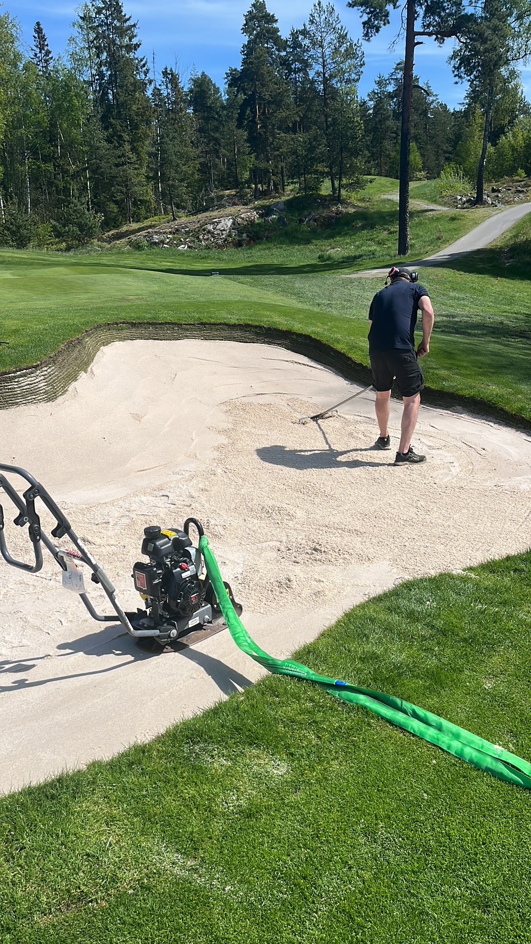 Den nya bunkern på 17 har vi bara hört positiv feedback om. Apropå just bunkrar så har många timmar lagts ner på att få greenbunkrarna lite hårdare i kanterna. Vi har använt en mindre asfaltspadda för att skapa en bättre packad yta som inte gör att bollarna blir pluggade. Ett jobb som måste göras kontinuerligt men som är tidskrävande för oss.