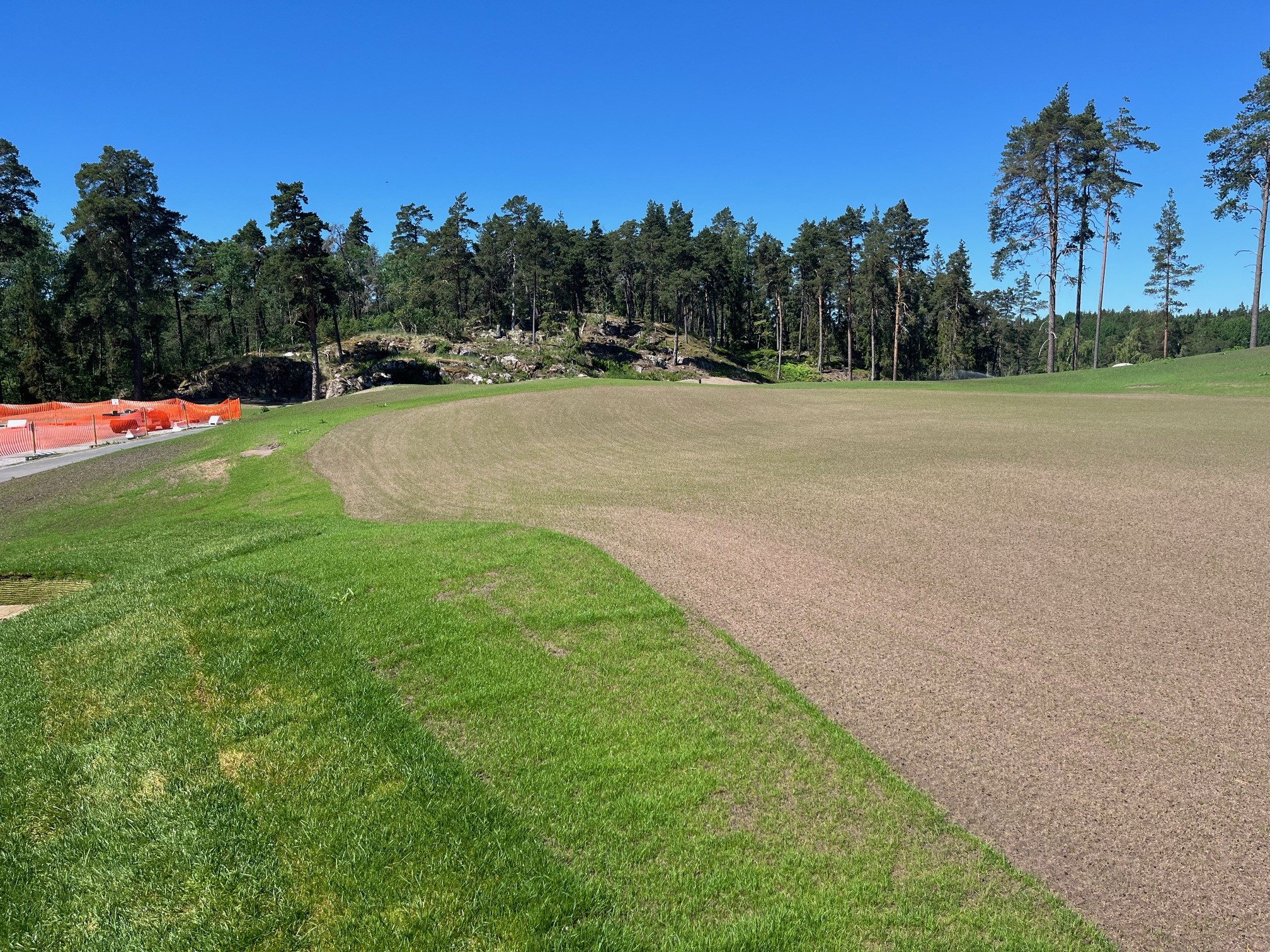 Det har varit en väldigt intensiv vår för oss på banan, det nya övningsområdet har iordningställs och gjort redo för sådd. Ytorna blev sådda för dryga veckan respektive två veckor sedan. Nu är det bara se till att ytorna hålls fuktiga från morgon till kväll för ett bra etablering. Nya gångvägen har asfalterats samt har kantsten satts ut. Den lilla rabatten vid anslutning till övre parkeringen har också gjorts i ordning så nu väntar vi endast på att växterna ska komma.