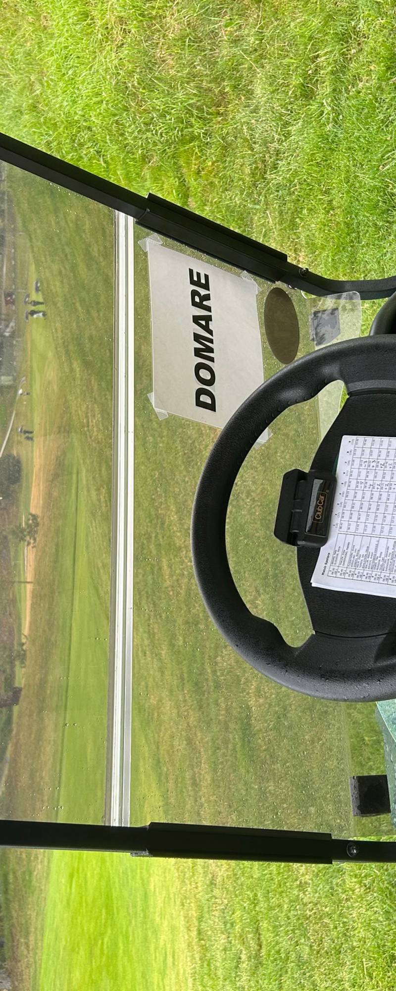 Fråga; Hål 12, spelaren undrar om hen får lättnad utan plikt för hjulspår i ruffen till vänster om green.