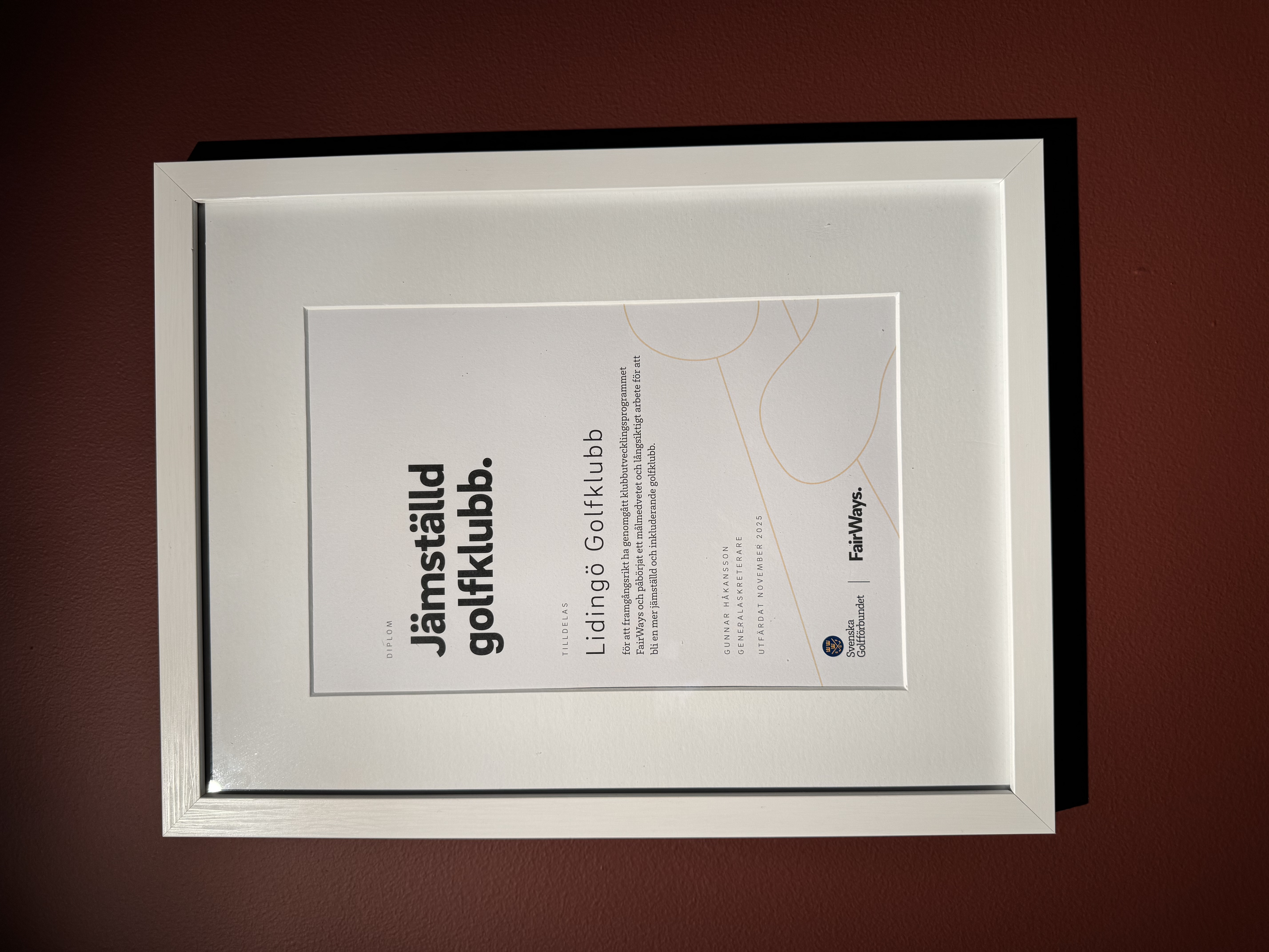 Den 9 april fick vi diplom av SGF för att vi genomfört klubbutvecklingsprogrammet FairWays,